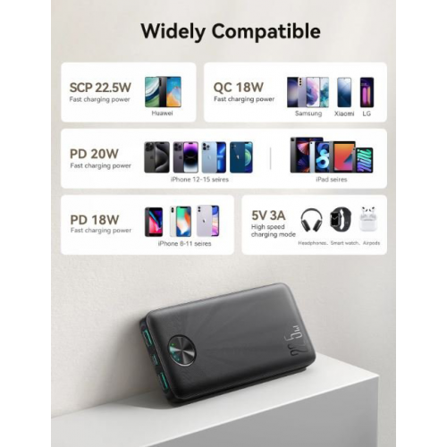 ابقَ أجهزتك مشحونة دائمًا مع باور بانك JOYROOM JR-PBF15، بسعة 10000mAh وقدرة شحن سريعة 22.5 واط، لتمنحك أداءً قويًا وحجمًا مناسبًا في آن واحد.
