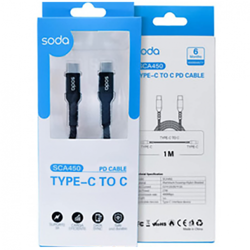 كابل تايب سي soda TYPE-C TO TYPE-C 5V/3A PD SCA450 ( ضمان 6 شهر )